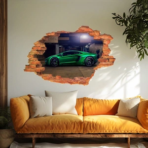 Naklejka na ścianę 3D SAMOCHODY zielone Lamborghini w garażu 90 cm na 60 cm