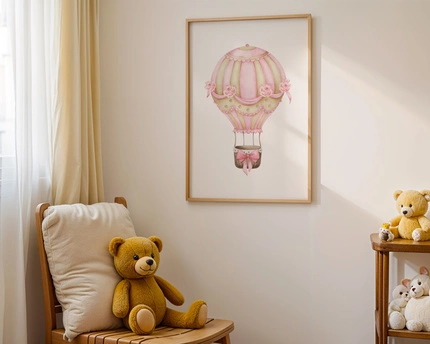 Plakat do Pokoju Dziecka 42x30 cm – Balon w Kwiaty | Ramka Drewniana A3
