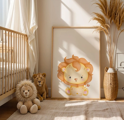 Plakat Lew Maluszek w Ramce 42x30 cm – Bajkowa Dekoracja do Pokoju Dziecka | Format A3 z Drewnianą Ramką
