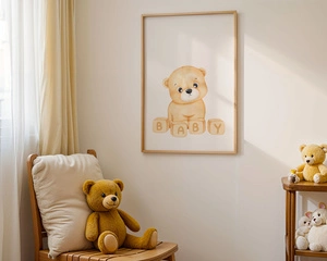 Plakat Miś BABY 42x30 cm – Dekoracja do Pokoju Niemowlaka | Format A3 w Drewnianej Ramce