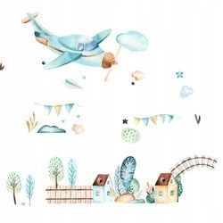 Naklejka na ścianę Samolot tory drzewa 90 cm na 60 cm