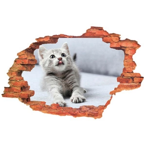 Naklejka na ścianę 3D Kot szara kicia 90 cm na 60 cm