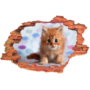 Naklejka na ścianę 3D Kot figlujący kociaczek 90 cm na 60 cm
