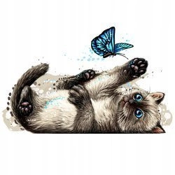 Naklejka na ścianę KOTEK z niebieskim Motylem 90 cm na 60 cm