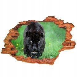 Naklejka na ścianę 3D Czarna Pantera czająca się na zdobycz 90 cm na 60 cm