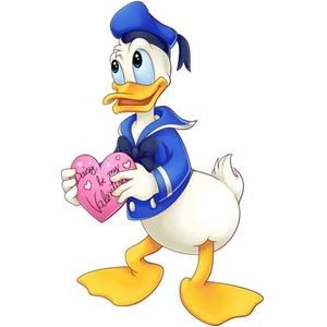 Naklejka na ścianę Kaczor Donald z różowym sercem 90 cm na 60 cm