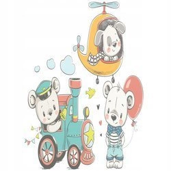 Naklejka na ścianę Misiek prowadzi pociąg z ptaszkiem 90 cm na 60 cm