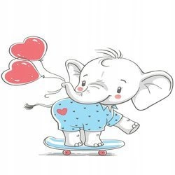 Naklejka na ścianę Słonik na deskorolce z balonikami 90 cm na 60 cm
