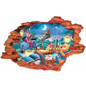 Naklejki na ścianę 3D KUBUŚ PUCHATEK wszyscy śpią w nocy 60 cm na 90 cm