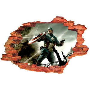 Naklejka na ścianę 3D KAPITAN AMERYKA odbija pociski tarczą 90 cm na 60 cm