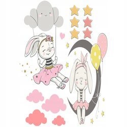 Naklejka na ścianę Króliczki z gwiazdkami i chmurkami 90 cm na 60 cm