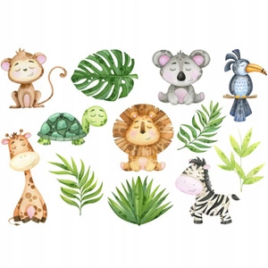 Naklejka na ścianę SAFARI roślinki ptaszek lew zebra żyrafa 90 cm na 60 cm