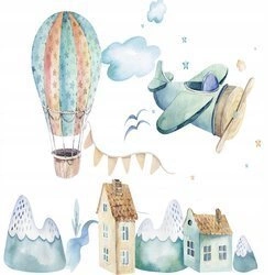 Naklejka na ścianę Samoloty Balony chmurki 90 cm na 60 cm