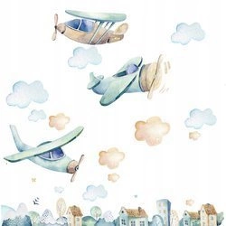 Naklejka na ścianę 3 Samoloty miasto chmurki 90 cm na 60 cm