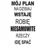 Naklejka na ścianę cytat napis MOTYWUJĄCY mój plan wstaję robię niesamowite rzeczy 75 cm na 45 cm
