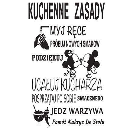 Naklejka na ścianę napis do Kuchni Kuchenne zasady Myszka Miki 75 cm na 45 cm