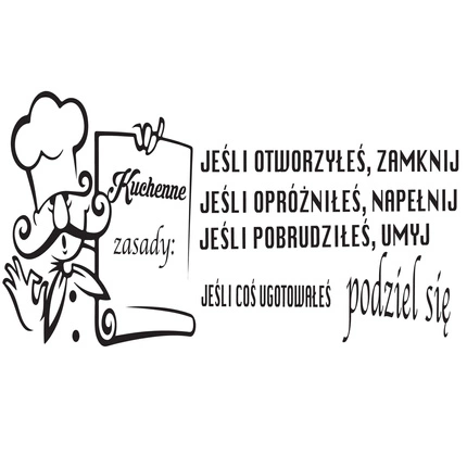 Naklejka na ścianę napis do Kuchni Kuchenne zasady Kucharz 75 cm na 45 cm