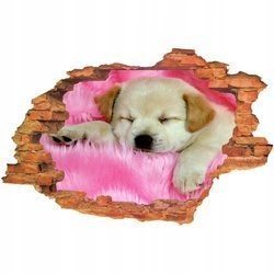 Naklejka na ścianę 3D Pies psinka śpiąca na różowym futerku 90 cm na 60 cm