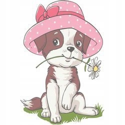 Naklejka na ścianę Piesek w czapce z Kwiatkiem 90 cm na 60 cm