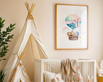 Plakat Zwierzątka w Balonie – Dekoracja do Pokoju Dziecka A3 | Ramka z Jasnego Drewna