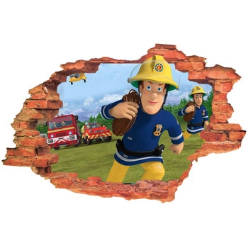 Naklejka na ścianę 3D Strażak Sam biegnie do pożaru 90 cm na 60 cm