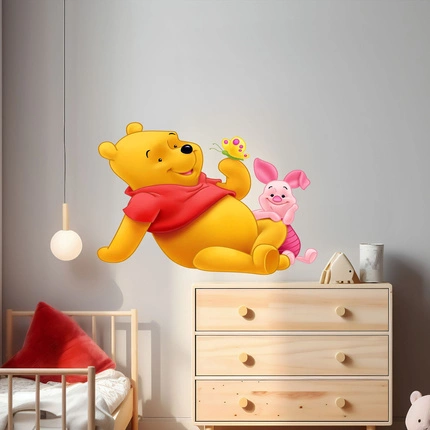Naklejki na ścianę KUBUŚ PUCHATEK z motylkiem i prosiaczkiem 60 cm na 90 cm