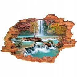 Naklejka na ścianę 3D Wodospad błękitno-białe wody spadające z gór 90 cm na 60 cm