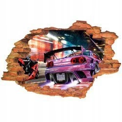 Naklejka na ścianę 3D SAMOCHODY szybcy i wściekli wyścig po mieście 90 cm na 60 cm