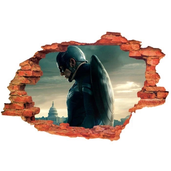 Naklejka na ścianę 3D KAPITAN AMERYKA po wygranej bitwie 90 cm na 60 cm