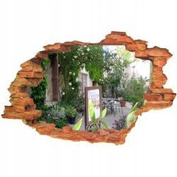Naklejka na ścianę 3D Uliczka stolik w kwiecistym ogrodzie 90 cm na 60 cm