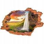 Naklejka na ścianę 3D Wodospad na tle zachodzącego słońca 90 cm na 60 cm