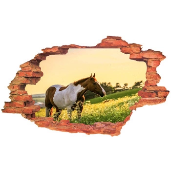 Naklejka na ścianę 3D KOŃ na łące 90 cm na 60 cm