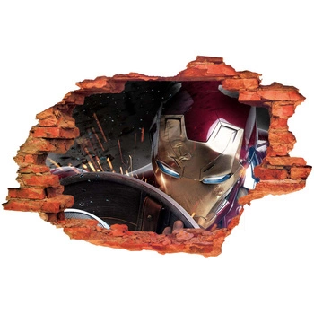 Naklejka na ścianę 3D IRON MAN obrona tarczą 90 cm na 60 cm