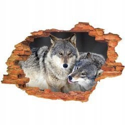 Naklejka na ścianę 3D Wilk z młodym wilkiem 90 cm na 60 cm