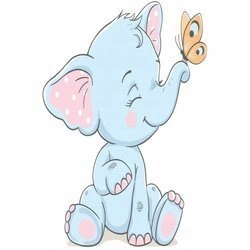 Naklejka na ścianę niebieski Słonik z motylkiem 90 cm na 60 cm