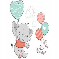 Naklejka na ścianę Słonik z króliczkiem z balonikami 90 cm na 60 cm