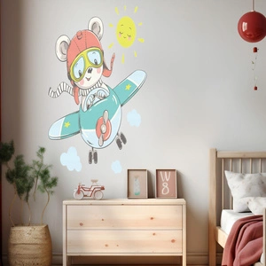 Naklejka na ścianę Misiek leci samolotem i słoneczko świeci 90 cm na 60 cm