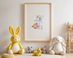 Plakat Miś z Balonami 42x30 cm – Dekoracja do Pokoju Niemowlaka | Format A3 w Drewnianej Ramce
