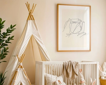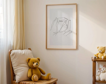 Plakat Stópki w Dłoniach – Minimalistyczna Dekoracja do Pokoju Dziecka A3 | Ramka z Jasnego Drewna
