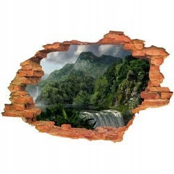 Naklejka na ścianę 3D dżungla góra wodospad 90 cm na 60 cm