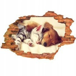 Naklejka na ścianę 3D Pies i Kot dwie śpiące mordki: psa i kota 90 cm na 60 cm