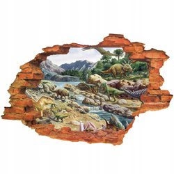 Naklejka na ścianę 3D DINOZAUR kraina zwierząt żyjących dawno temu 90 cm na 60 cm