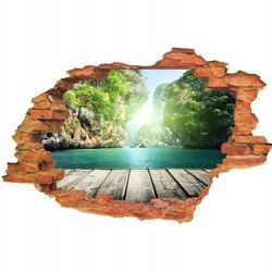 Naklejka na ścianę 3D Krajobraz wodospad na zboczu pasma górskiego 90 cm na 60 cm