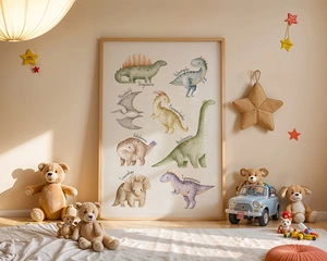 Plakat Dinozaury Edukacyjne 42x30 cm – Pokój Dziecka | Drewniana Ramka A3